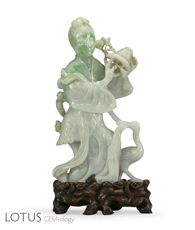 Figure 2. Qing dynasty fei cui statue of Magu presenting longevity gifts. Photo: Yù Jen Co., auction lot no. 36.
