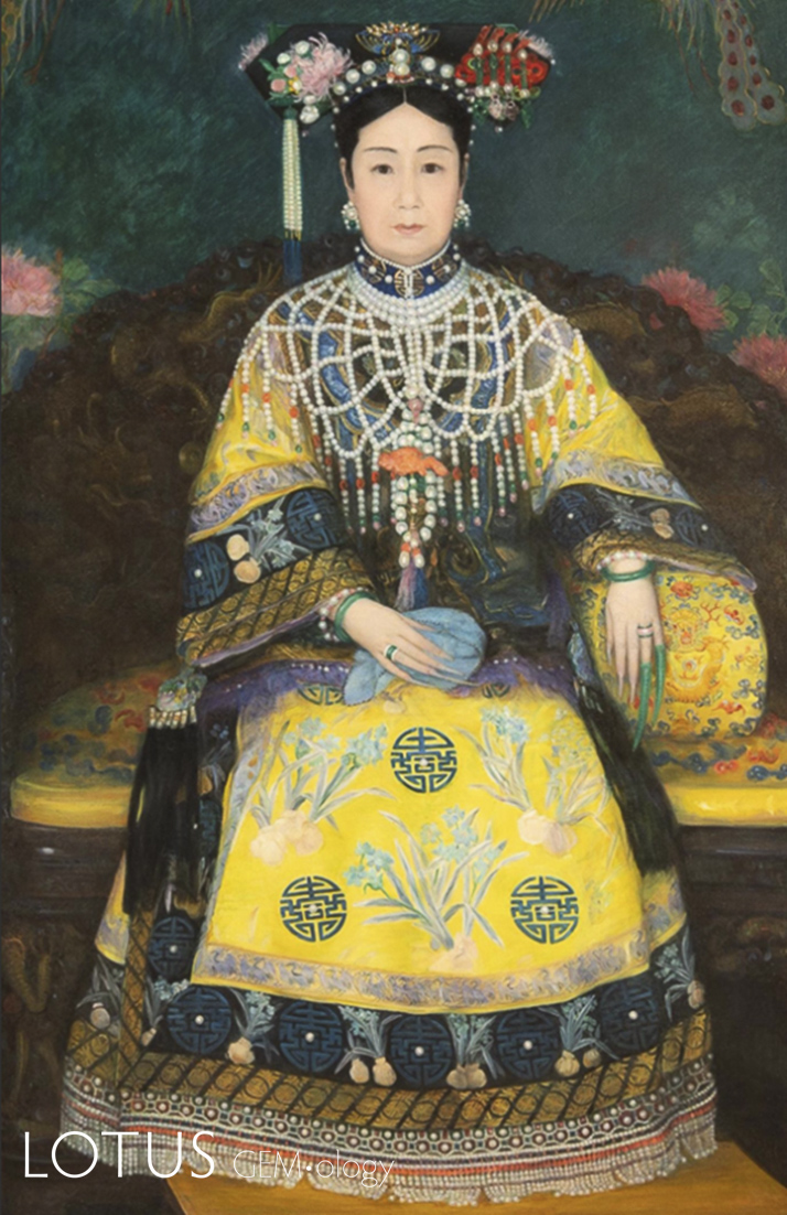 [6] Shuai Dequan, “Cixi and pearls,” China Gems & Yù, Vol. 1 (1994): p. 34; Li Chengwu, “Notes from Aiyue studio,” in The Plunder of the Eastern Tombs (published 1928) 2: 19–21.