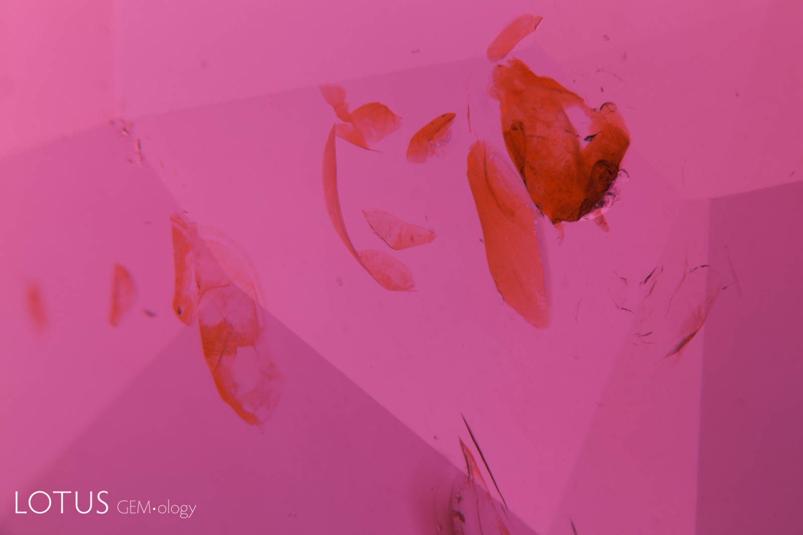 1. This red spinel from Tanzania’s Mahenge mines showed an unusual orange coloration surrounding a fingerprint inclusion.