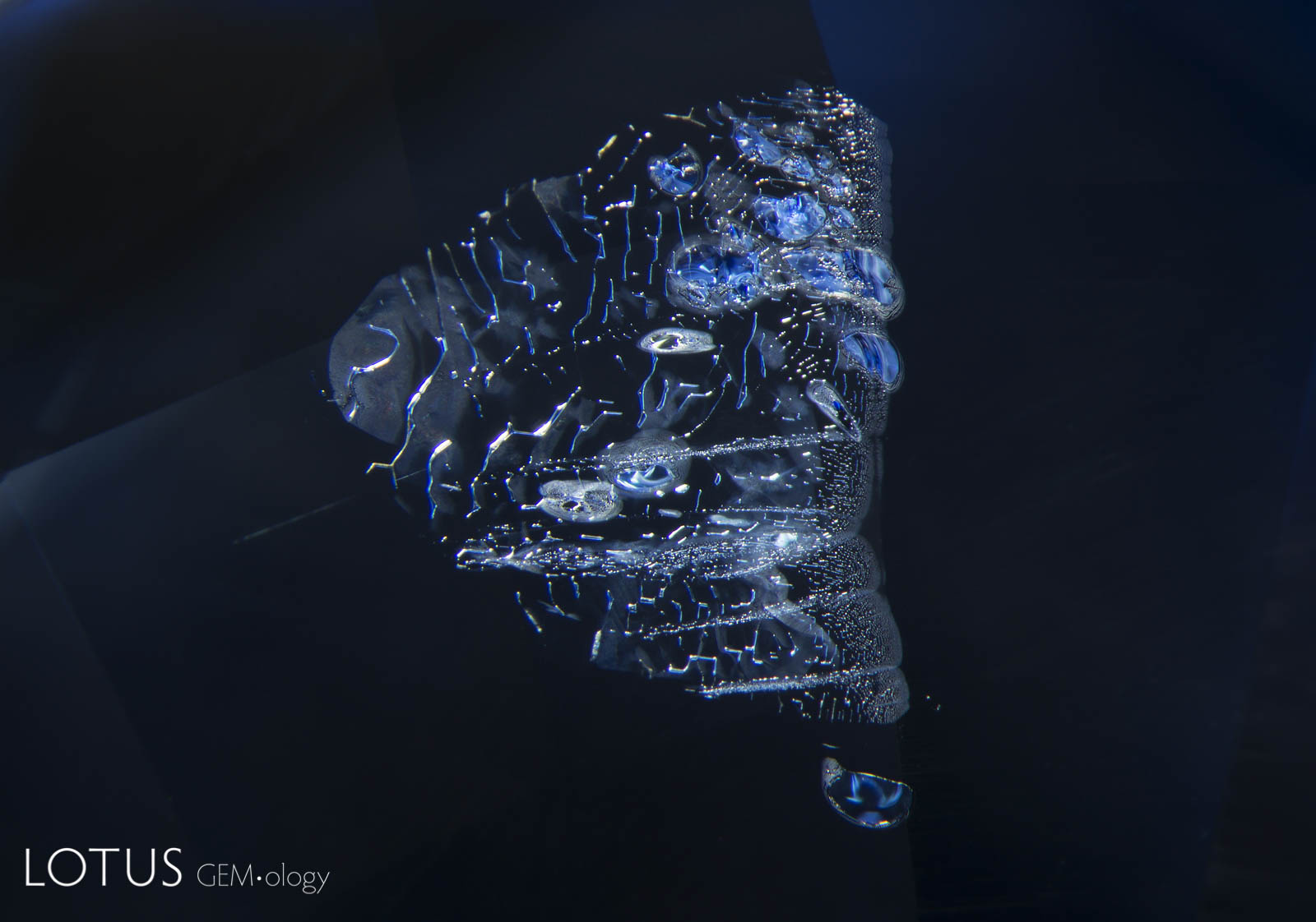 1. Negative crystals in an untreated Mogok, Myanmar (Burma) sapphire in transmitted light.