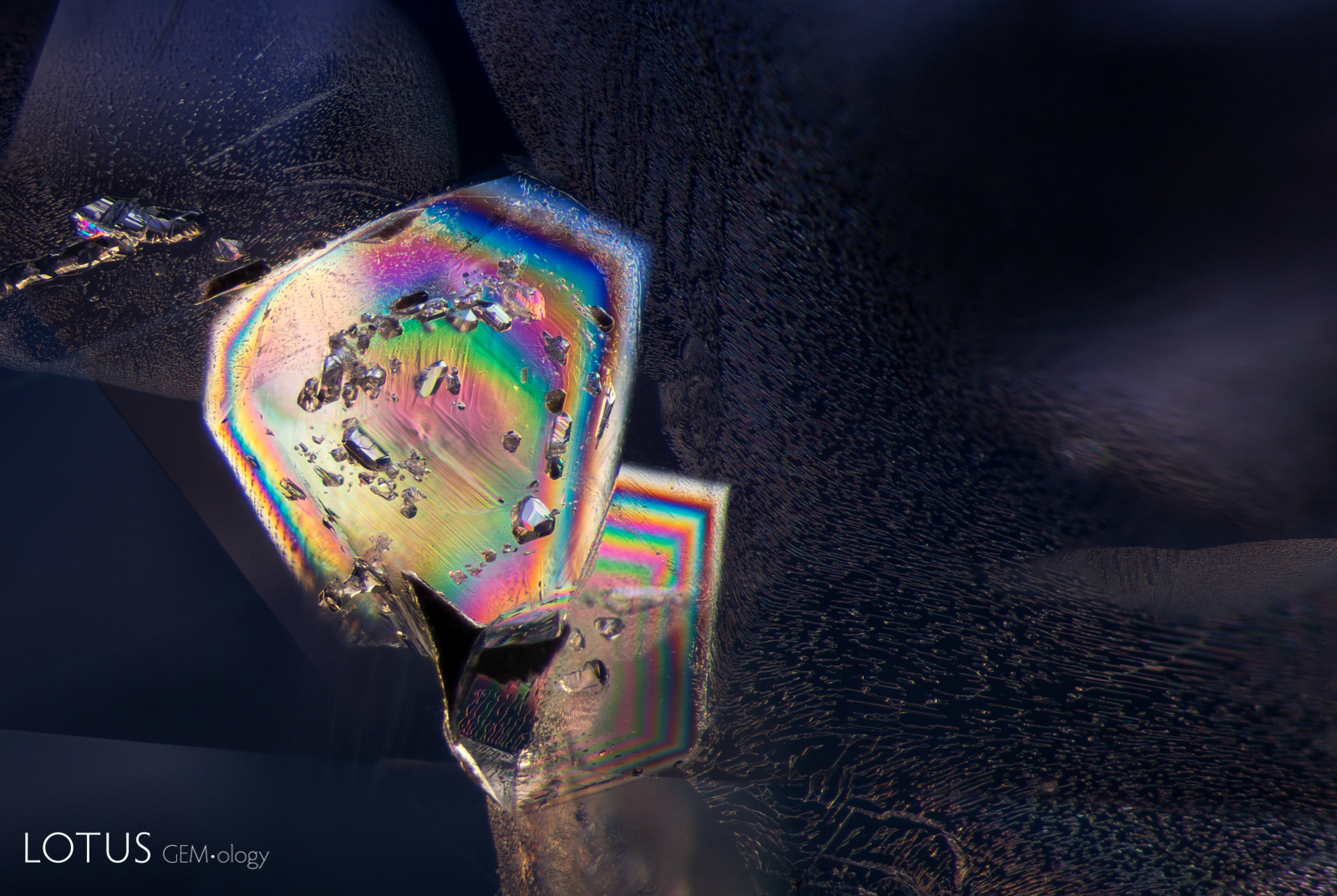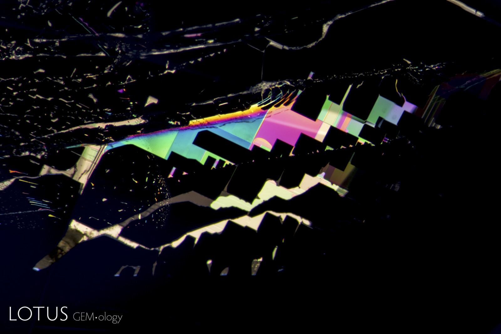1. Birefringent crystals light up in different colors in this sapphire from Sri Lanka when viewed between crossed polars.