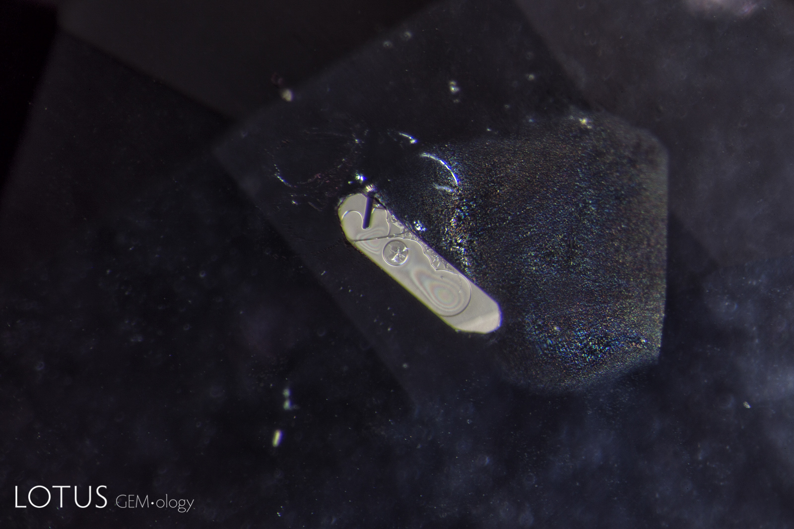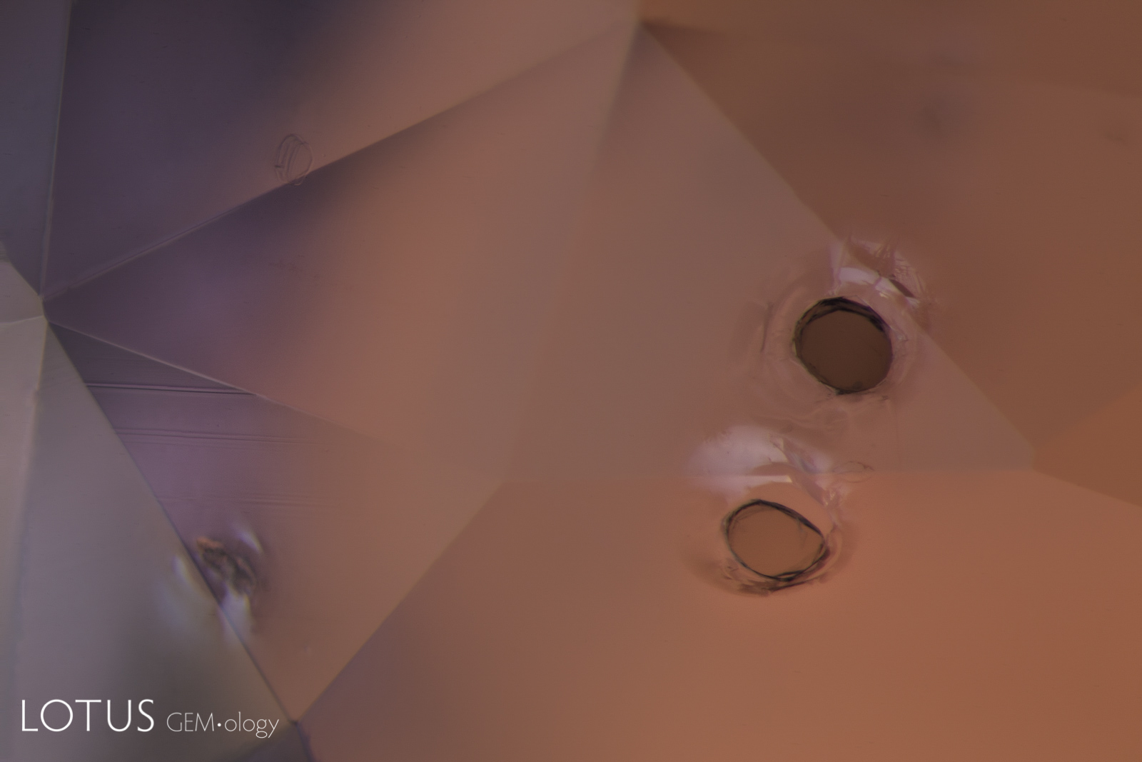 1. Laser-Induced-Breakdown-Spectroscopy (LIBS) is used by some gem labs to test for beryllium. Unlike Laser Ablation Inductively Coupled Plasma Mass Spectroscopy (LA-ICP-MS), the surface is actually melted (rather than ablated), producing the circular rippled mark we see in the center of the girdle on the stone at left.